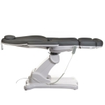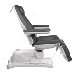 Elektrycznie regulowana wysokość siedziska, kąt podparcia pleców i nóg oraz tzw. kołyska.