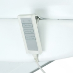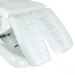 Piękna biała skóra ekologiczna, podłokietniki wykończone drewnem to powiew luksusu. Oferowany sprzęt kosmetyczny jest także bardzo praktyczny – prezentowany fotel kosmetyczny posiada otwór na twarz w zagłówku umożliwiający wykonywania masażu, a elektrycznie regulowana za pomocą pilota wysokość siedziska, kąt podparcia pleców oraz kąt pochylenia fotela zapewnia komfort codziennej eksploatacji.