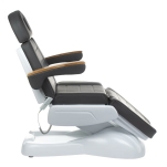 Elektrycznie regulowana wysokość siedziska, kąt podparcia pleców i nóg.